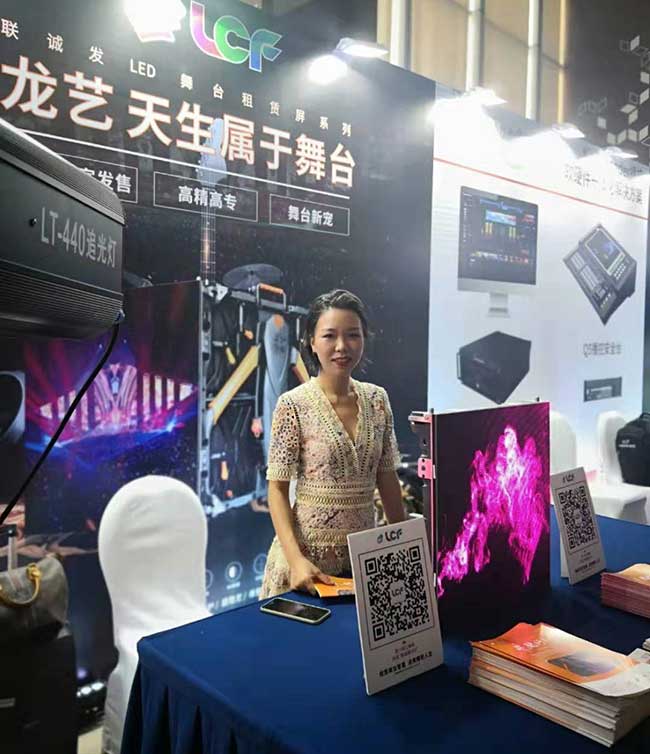 演讲结束之后,长沙市演艺设备行业协会会长娄海涛先生表示对钱柜QG777产品十分感兴趣,并第一时间亲临钱柜QG777展位与魏玉红女士进行了解,钱柜QG777副总魏玉红女士也是非常细心的给娄海涛先生详细讲解了我们的展示样品——龙艺,龙艺的应用遍布全国各地各种大小演艺舞台,龙艺系列具有出色的视觉效果,画面清晰、性能稳定,可全方位满足拍照需求,美观实用又方便安装维修,简直就是为了舞台而生,其优势和效果令娄海涛先生赞不绝口!
