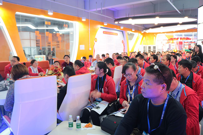 在百余名采购团成员认真听取了钱柜QG777企业及产品宣讲后,公司创始人龙平芳女士讲述了创业的艰辛历程及近几年钱柜QG777在市场上做的努力和成就。其中,重点提及了公司今年与中国企业变革专家“百思特”的合作以及目前正在试样的小间距“龙显”系列,她透露,“龙显”将会是行业的精锐系列,其除了可以实现更小的间距,还可以根据使用场合选择组装方式。因此,尽管“龙显”只在PPT中出场,但仍不失为本次交流会的最大亮点。
