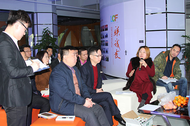 创始人龙平芳女士正在对国际营销中心工作汇报进行点评,提出在2018年国外战略布局上应该敢于尝试,扬长补短,大步向前!