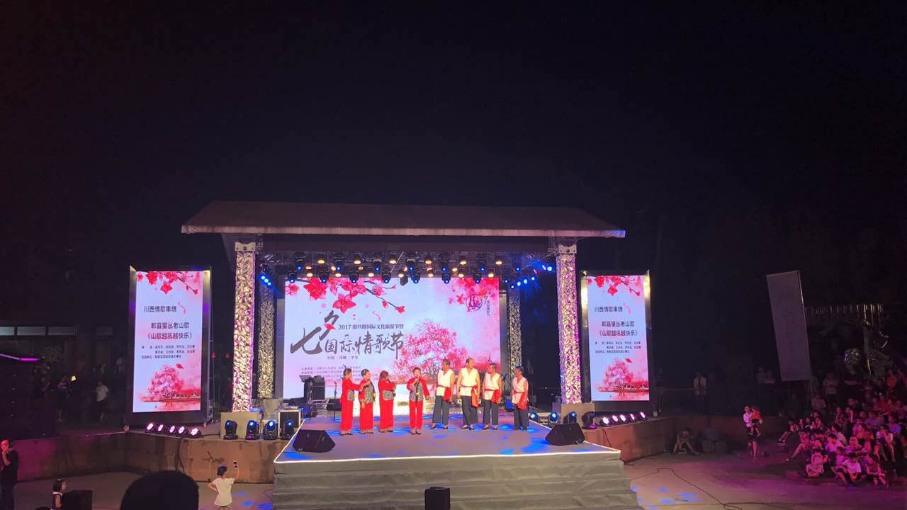 邛崃作为南方丝绸之路西出成都第一城,平乐古镇至今保留着被考古界人士视为至宝的秦汉驿道,这条驿道贯通了我国最早的一条国际经济文化大动脉,市井之间依旧传唱着司马相如和卓文君的浪漫爱情佳话,情歌节在邛崃举办,历史底蕴更浓。为更好的打造这座历史名城的文化名片,通过多方筛选,主办方最终决定选用钱柜QG777为这场责任重大的文化盛宴做助推——整个舞台背景用钱柜QG777LED显示屏幻化出符合应用的各类场景,光影浮动中,演绎浪漫爱情传奇,声色搭配韵味十足。