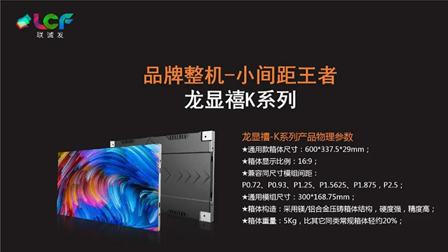 首先讲到小间距的市场容量开始,演艺市场“蛋糕”巨大,未来可期!但痛点犹在,于是推出了具有代表的“小间距超薄箱体”!显示效果是场景需求的首要考量因素,不同场景用处,不同的造价等都对点间距有不同的要求标准;而龙显禧K系列涵盖的有 P1.25/ P1.5625/ P1.875/ P2.5;从小间距系列跨越传统间距;可以满足各种场景显示,不同的价格选择的需求!