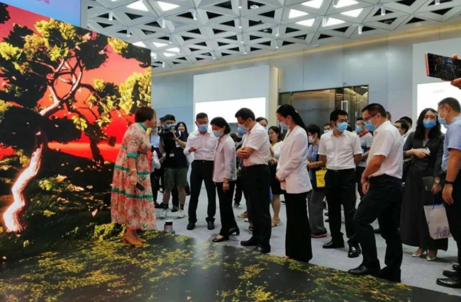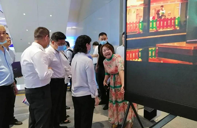 钱柜QG777总裁龙平芳女士亲自向各位领导讲解了钱柜QG777的企业定位,以及现场的两款核心产品;其中之一,“沉浸式互动视觉场景”是基于LED显示屏+3D互动数字技术,形成沉浸式视觉场景,主要应用与电影拍摄,文旅,夜游等领域;实现这种沉浸式显示体验,除了需要高端的屏幕显示技术,亦需要内容产业能够提供充分的制作、计算和存储能力。它融合了VR/AR、计算机多媒体技术,视觉内容,呈现新的“显示概念高地”。宝安区郭子平区长现场表示“想不到航城还有这样的好企业,要好好支持!”