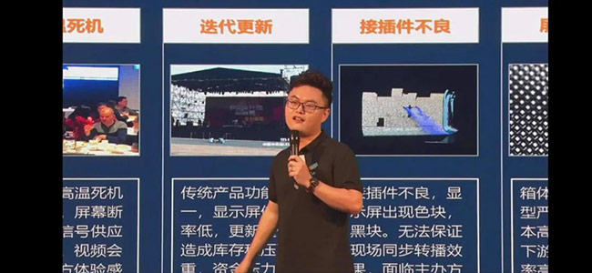 接下来由国际部总监黄总从小间距的市场容量开始,演艺市场“蛋糕”巨大,未来可期!但痛点犹在,于是推出了第二款是以“匠”为代表的“小间距超薄箱体”!