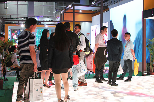 虽是买家和卖家各取所需,有求而来,但充满趣味与创意的场景无疑更受关注。在现场,互动地砖屏吸引了多数参展者驻足体验。其无论是单点的骤然施压,还是大屏的整体受压能力,屏幕色彩的纯度、色相、明度,运行机能完全不受影响,因而备受好评。